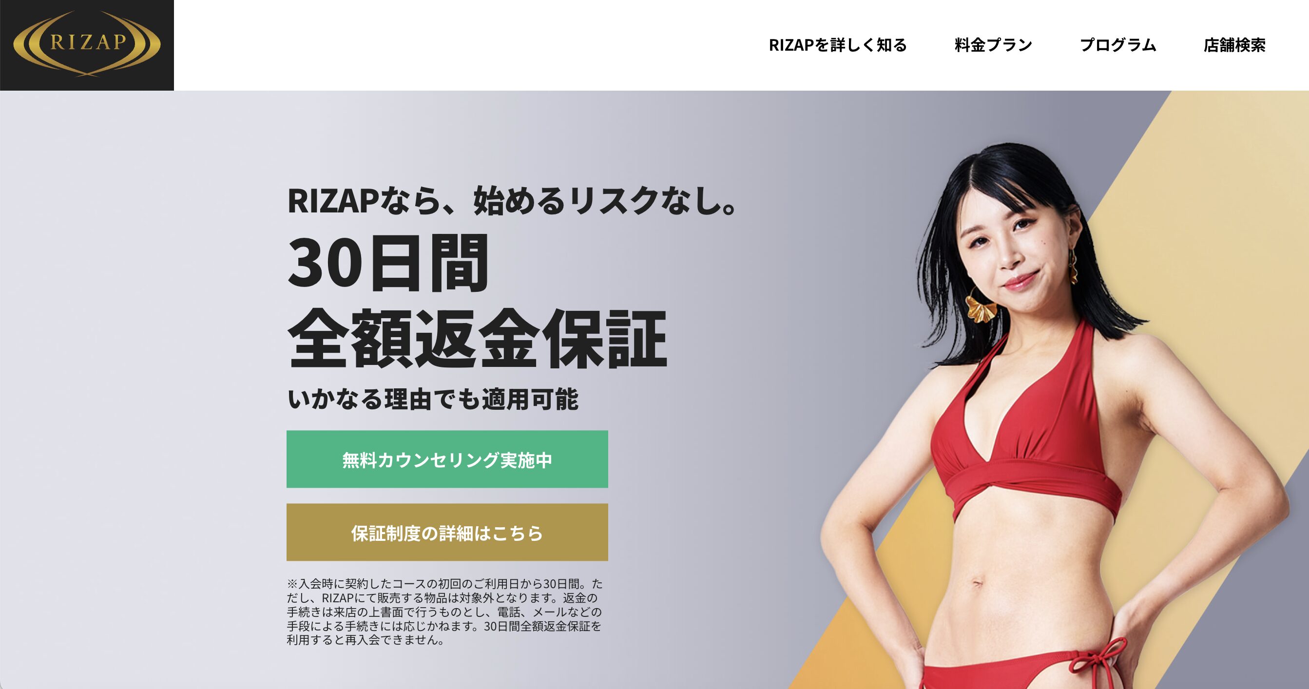ライザップは「結果にコミットする」というキャッチフレーズで知られる業界最大手のパーソナルジムです。約18万人の実績データに基づく科学的なメソッドと、専属トレーナーによる徹底した食事・トレーニング指導で、確実に結果を出したい方に最適です。料金は高めですが、それに見合う手厚いサポートが魅力です。