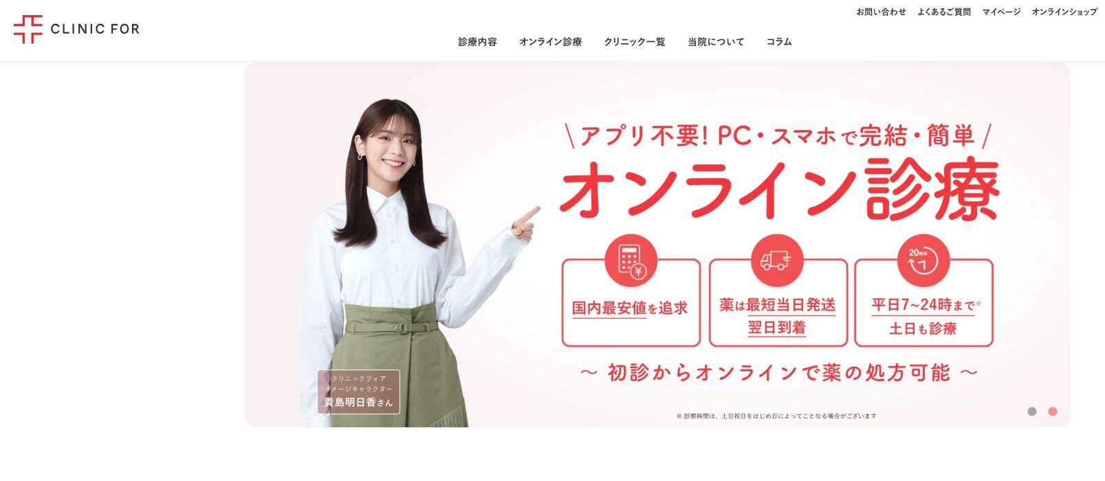 | クリニックフォア | 8,470円〜 | 1,650円 | 550円 | 7:00〜24:00 | 公式サイト |