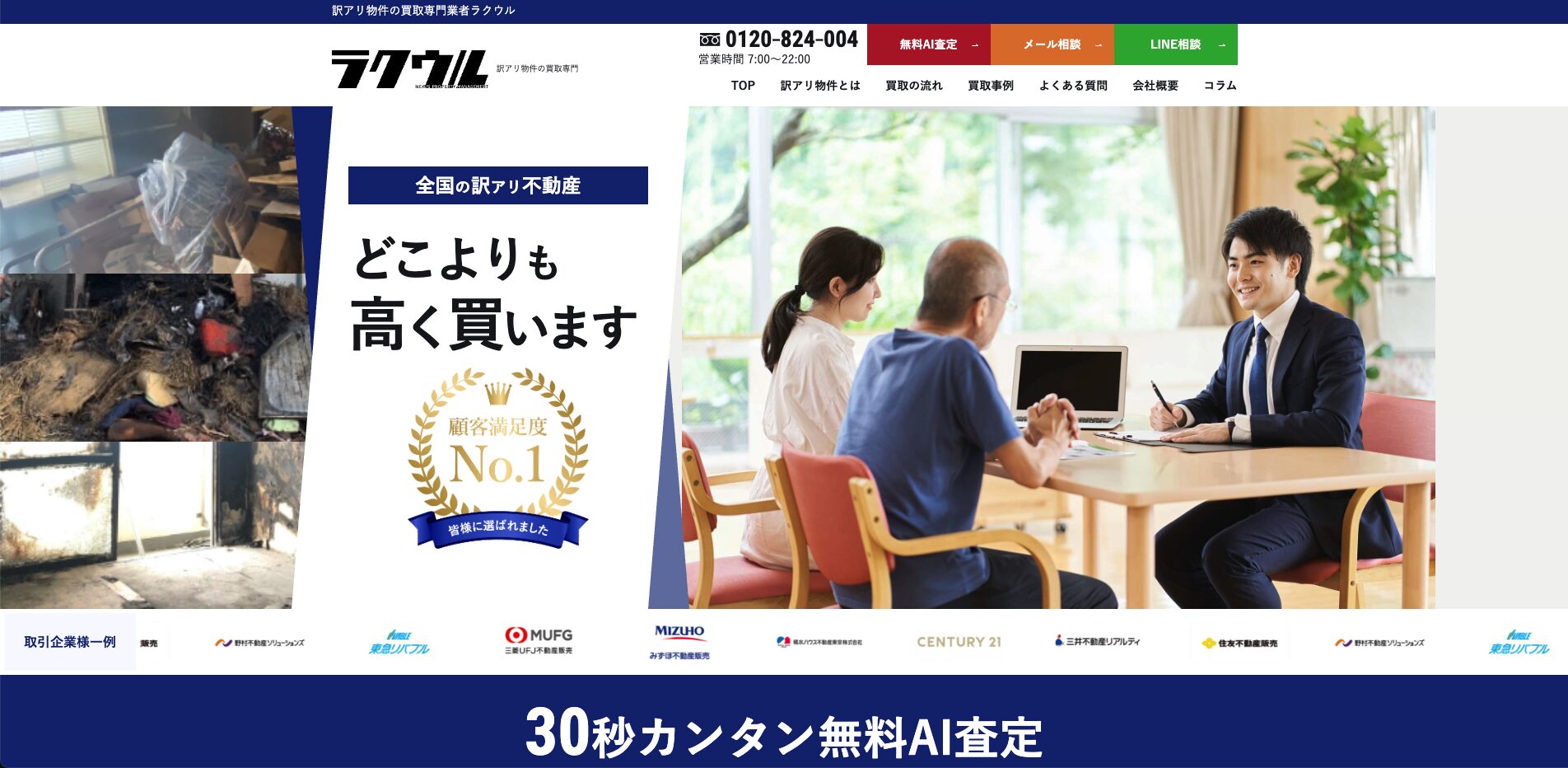ラクウルは、全国の訳あり不動産を直接買取している業界トップクラスのサービスです。