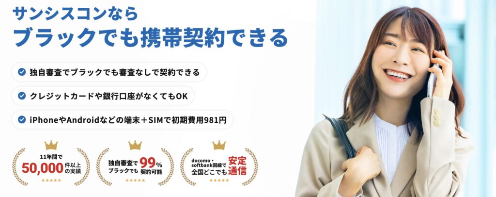 ✅ 審査なしで携帯ブラックでも契約可能