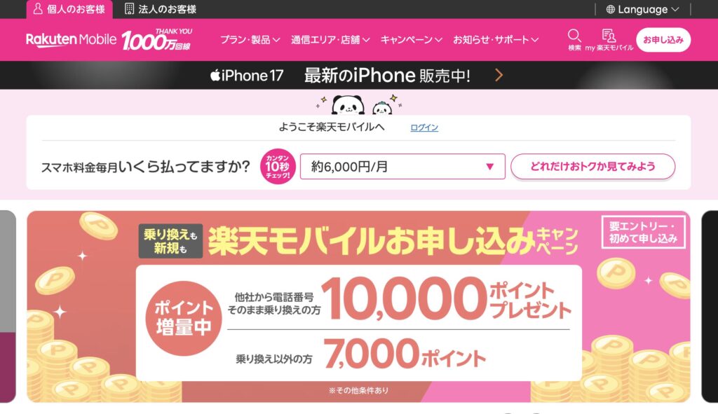 出典:楽天モバイル公式サイト